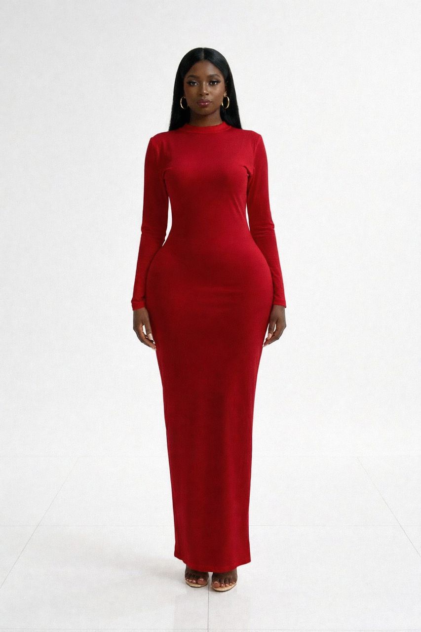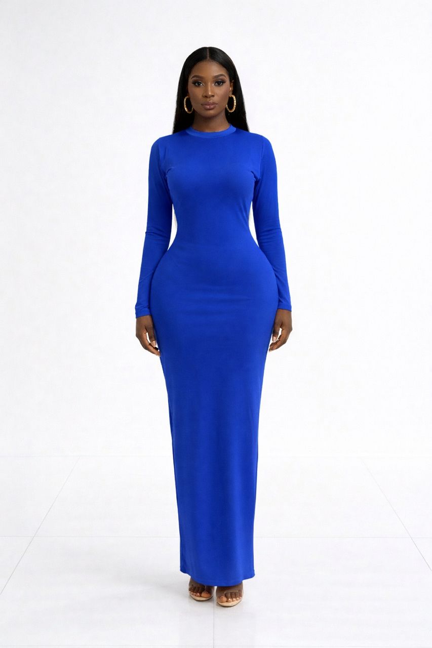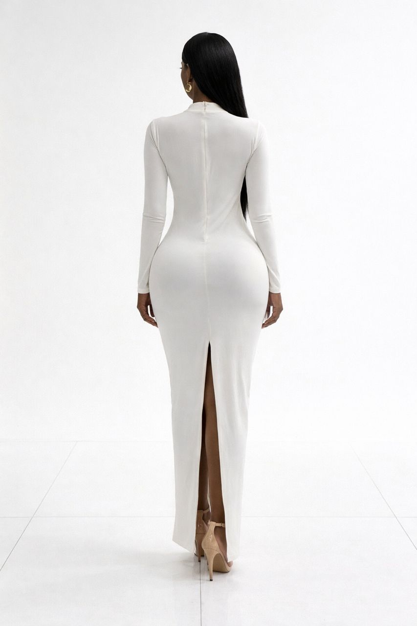 The long fitted sleeves balance the fitted structure of the dress, creating a flattering and elongated silhouette from top to bottom. Its full-length design adds an element of luxury and sophistication, making it ideal for elegant evenings, formal occasions, dinners, birthdays, or special events.