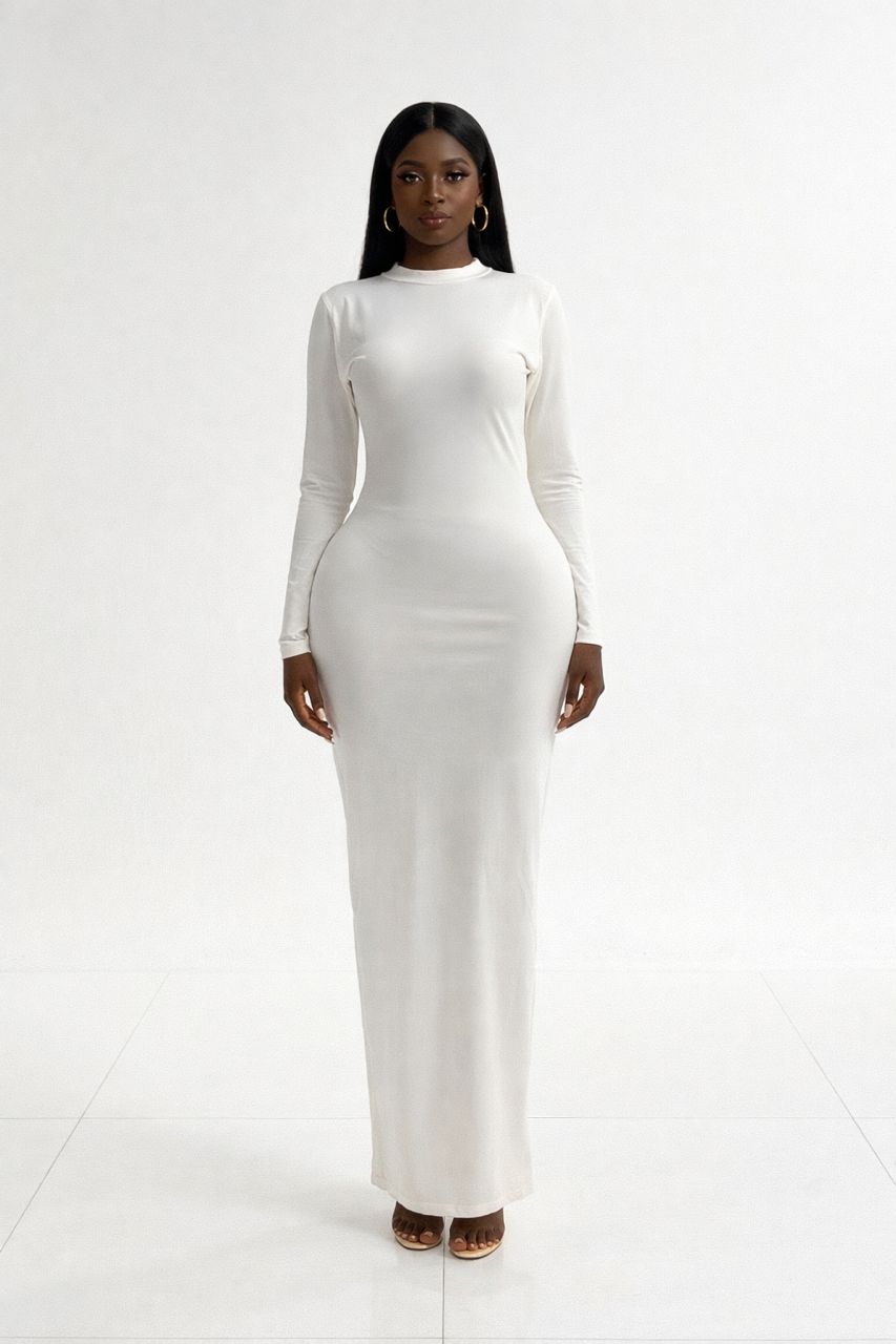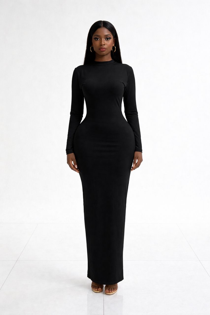 Minimal elegance meets modern sophistication with this stunning Mellisa Black long sleeve bodycon maxi dress. Designed for women who love a clean, refined look, this dress features a sleek high neckline and a smooth figure-hugging silhouette that enhances natural curves while maintaining a classy and graceful appearance.